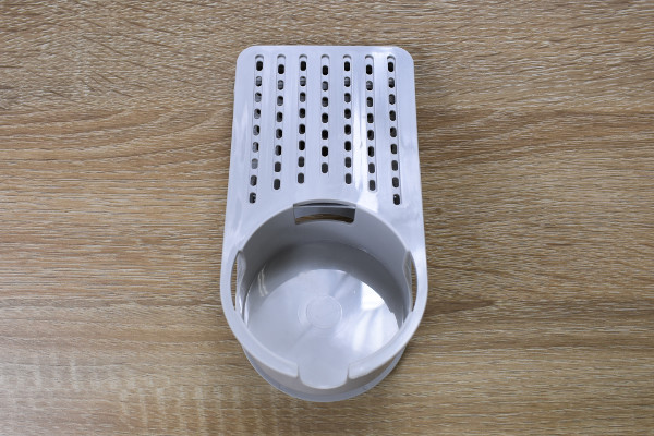洗濯バサミみたいな見た目の同商品は、グレーカラーのポリプロピレン製。サイズは約16(縦)×8.5cm(横)で、クリップにしてはかなりビッグサイズです。ドリンクをセットするために、本体が円型にくぼんでいるのが特徴的。