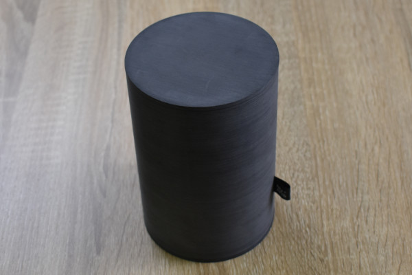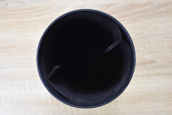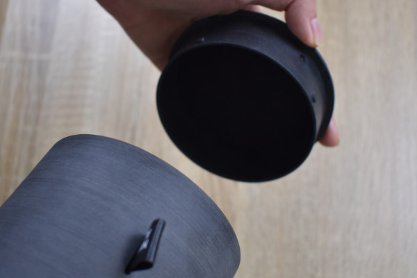 オリジナルの樹脂で作られた円柱型のキャディーは、まるで工芸品のような見た目。ストーンパウダーを混ぜ込んでいるため、高級感とともに落ちついた雰囲気を漂わせています。触り心地はツルツルでもなければザラザラでもない、なんとも不思議な質感。なお製品サイズは約100(幅)×100(奥行)×150mm(高さ)、重さは365gほどです。