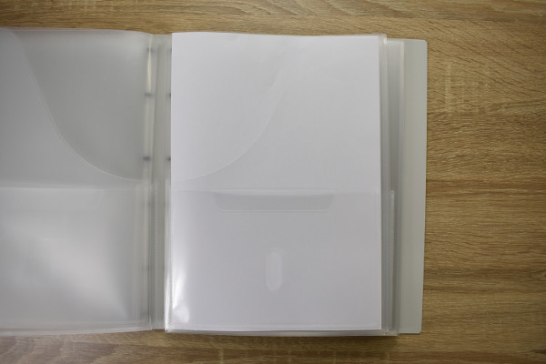 次に耐久性に優れているのが2つ目のポイントです。ポケットは最大8mmまで広がる“マチ”つきで、材質も一般的なポケットと比べて硬い印象。なおファイルの最大収納冊数は20冊、収納物の合計厚さは50㎜(ポケット厚を含む)の設計で作られています。許容範囲を超えてしまった場合は、破損の恐れがあるので気をつけてください。