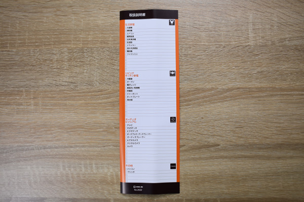便利なチェックシートが付属しているのも同商品の魅力。収納した取扱説明書の種類をチェックすることで、ファイルに何が入っているのかひと目で分かるようになります。これが4つ目のポイント。