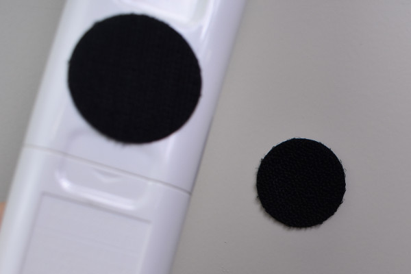 続いて硬い方のファスナーを、同じ要領でエアコンのリモコンに接着。先ほど壁につけたファスナーとリモコンにつけたファスナーを合わせれば、リモコンが壁に固定されました。少し力をくわえて引っ張ると、「ベリベリ」と引きはがせますよ。