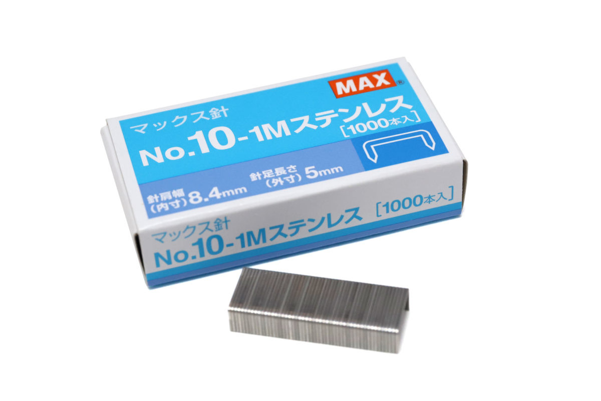 針が3倍入るホッチキスを紹介したついで、といってはなんだが、10号針もひとつオススメを紹介しておこう。こちらもマックスの「No.10-1Mステンレス」だ。