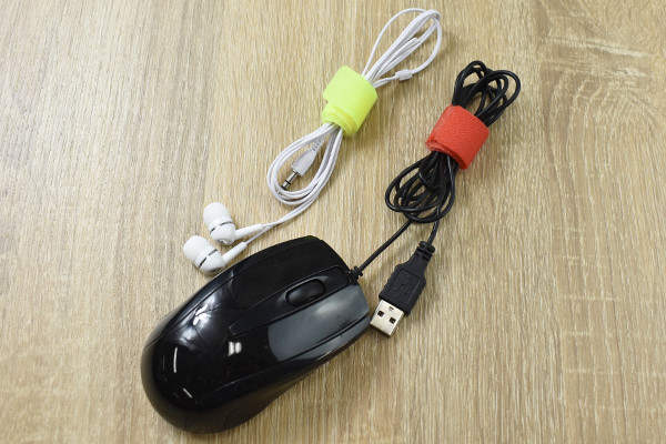 試しにマウスとイヤホンをまとめてみると、難なくケーブルをまとめられました。マジックテープは意外にもガッチリくっつくので、簡単には外れません。これなら複数のケーブルを同じ場所に収納しても、絡み合うことはなさそう。なお火のそばで使用したり、通電中のケーブルに巻くのは危険なので注意してくださいね。