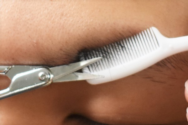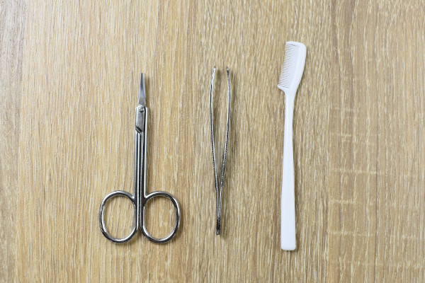 それでは、眉毛を整えていきましょう。初めにコームで眉毛をかき上げて、はみ出した毛をカット。思っていた以上に切れ味が良いハサミは、持ち手の部分が小さくてもストレスなく動かせます。コームを使えば毛の長さを均等に調整できるので、眉毛をスタイリッシュに整えられました。飛び出たムダ毛は毛抜きで抜いて、自分好みの形に仕上げてくださいね。