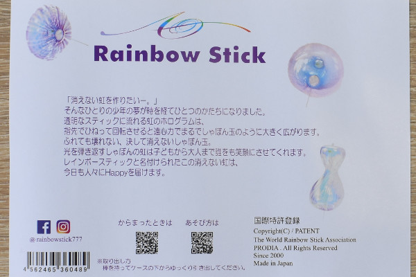 使っていると不思議と笑顔になれる同商品。スティックを回転させて、消えないシャボン玉を作ってみませんか?