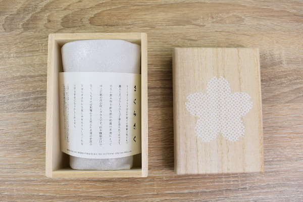 同商品を使用する前にまず驚いたのは、グラスが入っている“桐箱”。とても頑丈に作られていて、表面には桜の模様がプリントされています。高級感が漂う桐箱に圧倒されつつ箱を開けると、中にはフィルムに包まれたグラスが入っていました。