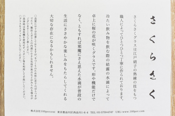 スタイリッシュなグラスやキッチン用品を世に送り出している100percent。同社から販売されている「SAKURASAKU YUKISAKURA TUMBLER」は、底面が桜の形をしたユニークなグラスです。じつは今年9月に放送された「教えてもらう前と後」で紹介されて話題になっていました。どのような使い心地なのか、実際にレビューしていきましょう。