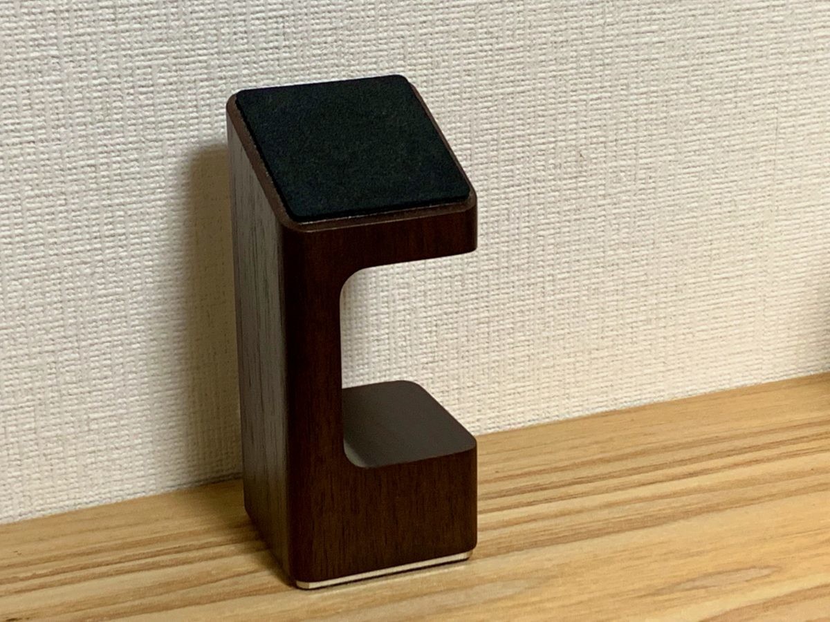 時計が見やすいように少し傾斜がついており、バンド部分は下に垂らして置くことができます。まさに腕時計を置くためにデザインされていますね。