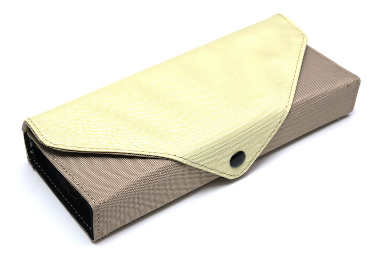 折れた状態では左右の収納部が磁石でくっつき、安定して置けるスリムなトレーに早変わり。本体自体が薄いためトレーとしてはかなり狭い印象だが、最後に使ったもの(=前回最後にケースに戻したもの)が一番上に出てくるため、いつものレギュラーなペンをすぐに取り出す、といった使い方には最適だ。