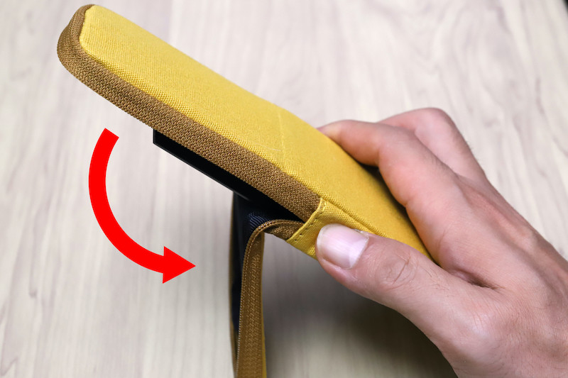一方、表側のフラップは手動で開く必要があるが、こちらは折り返したところで本体に磁力でピタリとくっつく。この状態で使えば、ペンスタンドとして狭いスペースでも使いやすいというわけだ。