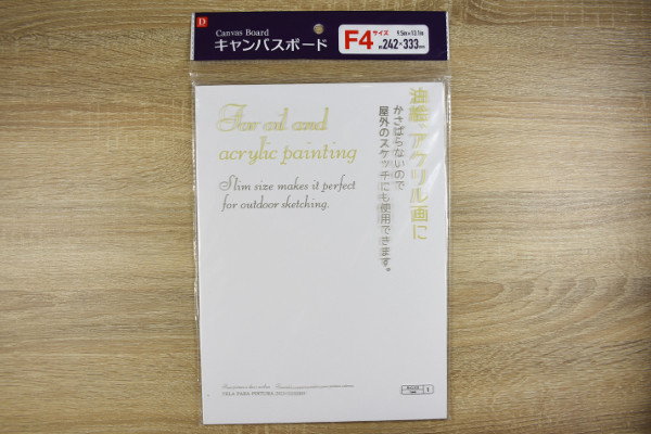 パッケージの中には、1枚の真っ白なキャンバスが入っています。大きさは約333(縦)×242mm(横)の「F4サイズ」で、厚みはわずか4mm程度。一般的なキャンバスと比べてかなり薄いのにもかかわらず、ちょっとやそっとの力では折り目がつきません。