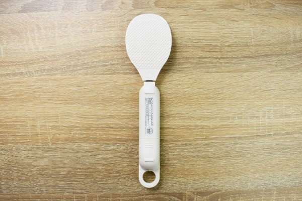 よそう部分は“ポリプロピレン”という軽い素材で作られており、引っ張るだけで持ち手から取り外せました。お手入れをする際は、食器洗い機や乾燥機に入れてもOKです。持ち手部分は防滴や防塵加工されていないので、水洗いをしないように注意してください。