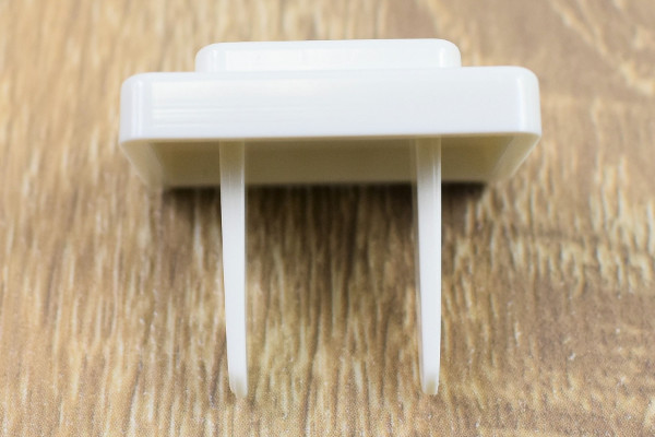 同商品は、未使用のコンセントに蓋ができる安全カバー。サイズは約2.8(幅)×2.4(奥行)×2cm(高さ)、材質はABS樹脂で作られています。コンセントにぴったりとはまりそうなデザインですが、カバーの表面には何やら小さな穴があいていました。