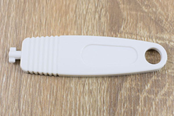 “安全カバー”だけでなく、同商品には“安全取り外しツール”も付属。こちらもABS樹脂製で、持ち手の先端がカバーの穴と同じ形をしています。
