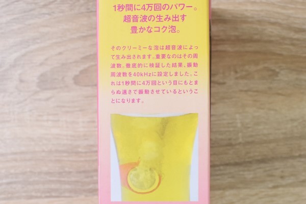同商品はグリーンハウスが検証を重ねて、先端から発生する“振動周波数”を40kHzに設定しています。これにより、1秒間に4万回という速さで振動して細かい泡を生み出しているそう。ビールをより美味しく飲むためのこだわりを感じますね。