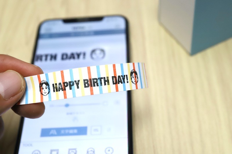 もうひとつ、Liteで面白いのは、専用のマスキングテープにも印字できるということ。柄のバラエティも多く、かつ、マステなので貼り剥がしも可能。プレゼントのラッピングをオリジナルのマステラベルで、というのも面白いのではないだろうか。