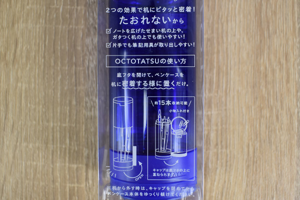 吸着パッドと衝撃低減バネを搭載した「たおれないペンケース『オクトタツ』」(キングジム)