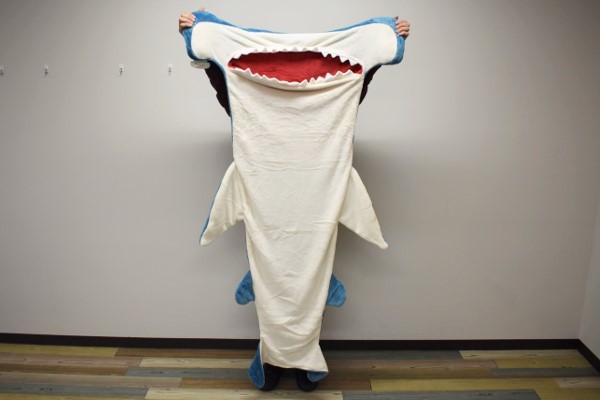 笑顔になれるシュモクザメがモチーフとなった同商品。温かいブランケットを探している人は、ぜひキュートなサメにパクッと捕食されてみてはいかが?