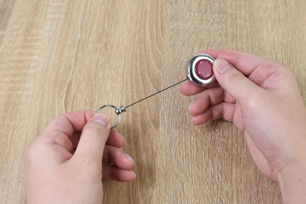 キーホルダーを引っ張ると、黒色のリールが約65cmまで伸びます。耐荷重は0.5kg未満なので、重い物を取りつけるのはNG。またキーホルダーから手を離せば、勢いよくリールが巻き取られる仕組みに。そっと元の位置に戻しながらしまうといいかも。