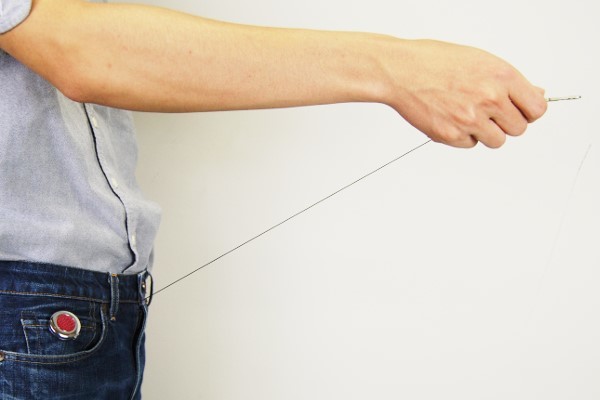 次は鍵の施錠にトライしてみます。リードが長く伸びるおかげで、同商品を装着したまま鍵の施錠ができました。これならいつでも手早く鍵を取り出せますね。鍵穴が少し高い位置にあっても、問題なく利用できそう。