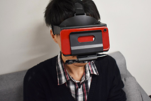 曲面ミラーに映る映像は、おおよそ1.2倍ほど拡大される模様。迫力のある映像に期待しつつ、さっそく使ってみましょう。曲面ミラーを見た結果、まるで映画のスクリーンみたいな映像が…! 現実に近い臨場感あふれる映像に思わず驚いてしまいました。なんだか映像の世界に引き込まれそうな感覚です。バンドが頭にしっかりフィットするため、安定感もバツグン。両手もフリーになるので、これなら寝転んだ体勢でも動画鑑賞できますね。