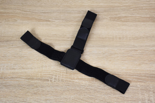 本体には付属品のバンドを通す穴が3か所あいています。穴に通したら、輪っかの形になるようバンドの面ファスナーで固定すればかぶれる状態に。頭の大きさに合わせてバンドの幅を調節してくださいね。