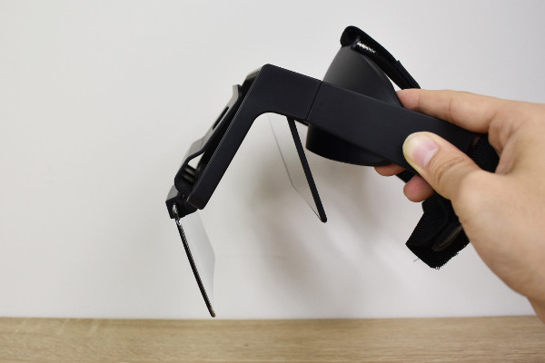 黒色で統一された同商品は、見た目がVRゴーグルにそっくり。デザインはクールな印象ですが、どこか近未来的な雰囲気も漂わせています。サイズは180(幅)×150(奥行)×215mm(高さ)で、重さは220gほどでした。