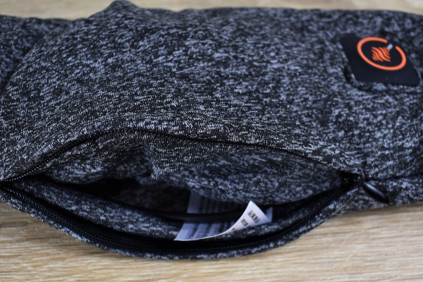 さっそく、同商品を首に巻いていきましょう。まずはチャック部分を開いて、USBプラグにバッテリーを装着。あとは電源ボタンを押せば、内部のヒーターが起動します。首に巻いてみたところ、うなじからポカポカと熱が伝わってきました。マフラーの生地がモコモコとした素材で作られているため、より温かく感じられるはず。