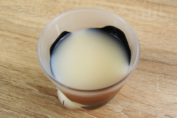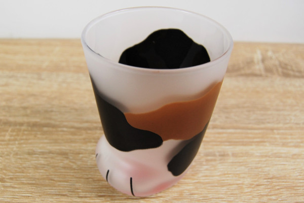 さらに“猫感”をアップさせる方法がもう1つ。ミルクなどの白っぽいドリンクを入れると、より猫の手足に近づきます。さっそく注いでみたところ、コップにホワイトカラーがプラスされて“白い毛並み”のようなデザインに。ガラスが若干ぼやけているおかげで、猫の毛並みに近いフワフワ感も伝わってきました。ずっと眺めているうちに、本物の猫と戯れたくなるかも? なお同商品は耐熱ガラスではないため、熱いドリンクは入れないでください。