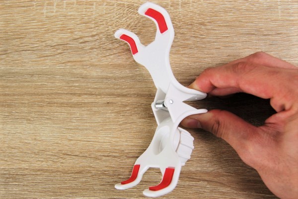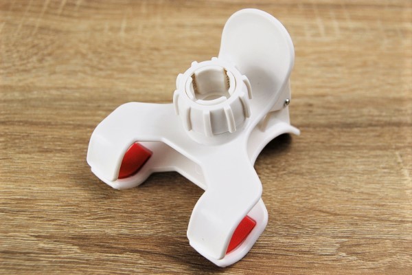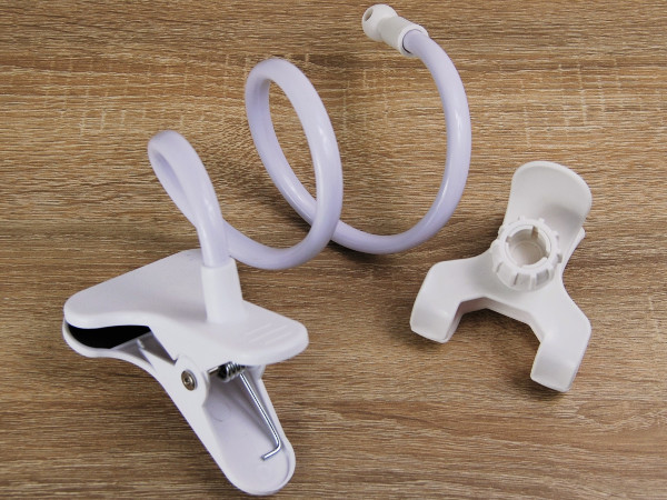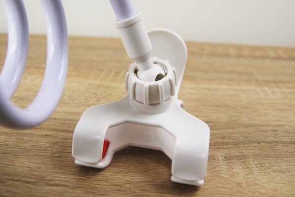 同商品はスマホを装着する“ヘッド部分”とグニャッとした“アーム部分”に分かれています。全体的に白を基調としたスタイリッシュなカラーリング。ヘッド部分には滑り止めのような素材が接着されているため、スマホがズレ落ちる心配もなさそうですね。
