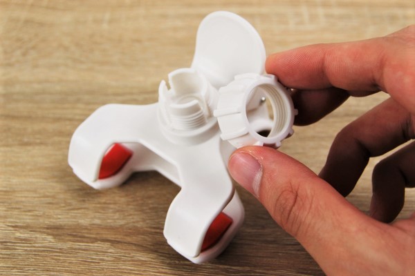 さっそく、2つの部品をセットしていきます。まずはヘッド部分のリングを外し、アームの丸い先端に装着。あとはネジのようにリングをギュッとしめれば完成です。特に難しい工程はなく、あっという間にスタンドを組み立てられました。