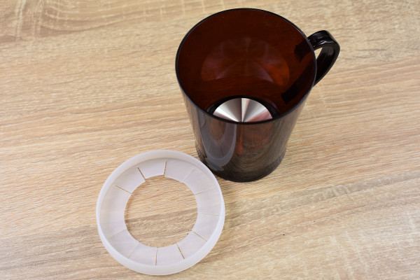 一見、取っ手のついた透明なカップにしか見えない同商品。食器棚に置いてあっても、ヒーターだと分かりません。フチの部分には隙間調整ラバーがはまっているため、小さい紙カップや缶コーヒーなどにも活用できますよ。