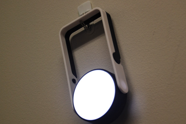 円形のライトとスタンドが一体となった同商品。どんな部屋でも合わせやすい白黒のデザインです。スタンドの部分をフックに引っかければ、壁掛けライトにもなりますよ。約75(横)×150(縦)×30mm(厚さ)ほどの大きさで、ライト部分は直径約65mm。小型ながらも幅広く、照明範囲で困りません。ライトが上下360度回転するため、自由に角度をつけて好きなところを照らせます。