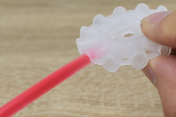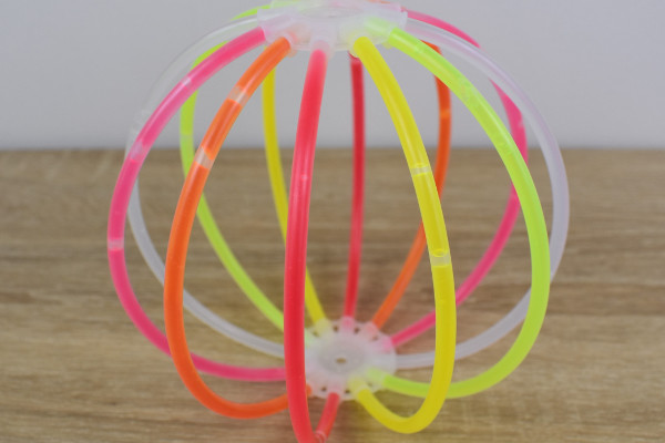 連結部品にスティックをセットすれば「光るボール」が完成。色の種類が豊富なため、並びを工夫して自分好みのグラデーションを追求するのも面白そう。
