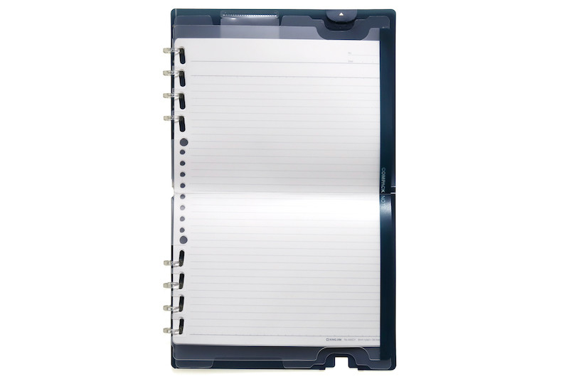 実は「コンパックノート」は、機能に対応した特殊な穴形状+最初から折り畳まれた専用ルーズリーフ用紙が用意されているのだ。
