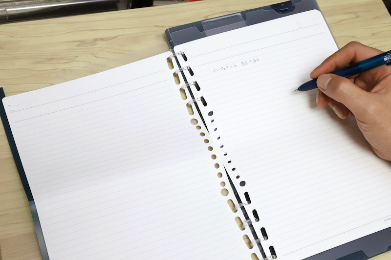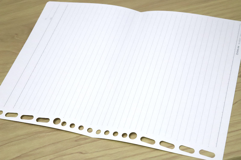 ところで、これまでの製品画像に対して「ん?」と思った人は鋭い。よく見ると、バインダーに入っているルーズリーフ用紙が、ちょっと不思議な感じじゃなかっただろうか。