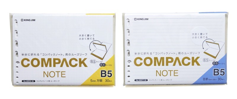 コンパックノート用ルーズリーフ(30枚入り)5㎜方眼/6㎜罫
