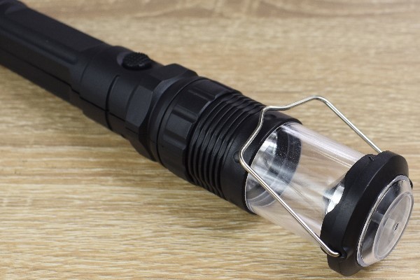 続いてランタン部分を取り外し。少し力を入れるだけですぽっと外れるので、手軽に懐中電灯に変えることができました。細いボディは持ちやすさ抜群。暗闇でうっかり落とさずに済みそうです。非常時に長時間片手で持つことを想定しても、うってつけの作りと言えるのではないでしょうか。