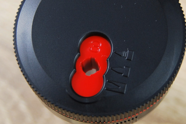 TSUNAGOのヘッドパーツを回してみると3種類の削り穴が。どうやらこの穴で2本の鉛筆を削ると、鉛筆同士を連結できる模様。まずは“1番”の穴に短い鉛筆のおしりを差し込み、クルクル回転させて穴をあけます。強く押し込んで回すと、鉛筆が割れる恐れがあるので注意。穴の長さはおおよそ2.5cmくらいが目安です。