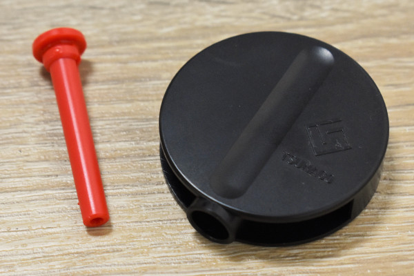 鉛筆を削る際に「回し辛い」「力が入りにくい」と感じたら、付属品「TSUNAGO PENCIL HOLDER」の出番。使い方は本体から赤色のピンを外し、穴に差し込むだけ。実際に使ってみたところ、持ち手の面積が増えたことでかなり回しやすくなりました。長さ6cm未満の鉛筆には使用できませんが、小さな子どもや握力の弱い人でも作業性が向上するのは魅力的かも。