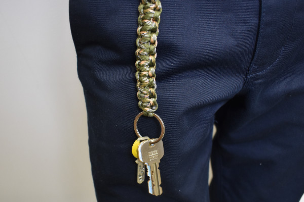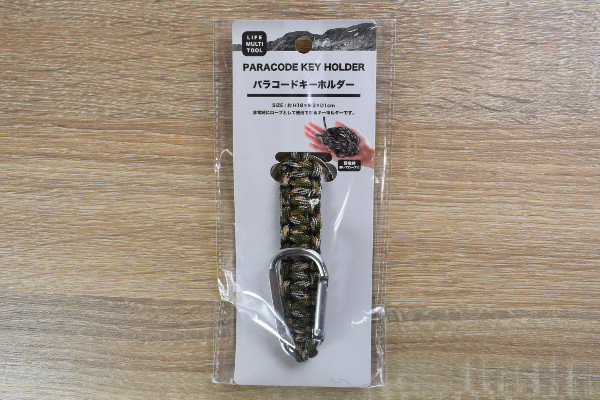 今回セリアで購入したのは、1本の紐を編み込んで作られた「パラコードキーホルダー」。いざという時にほどけば、ロープとして使用できる便利グッズです。