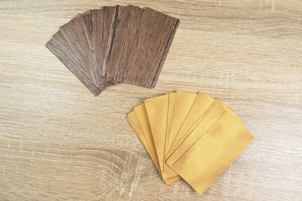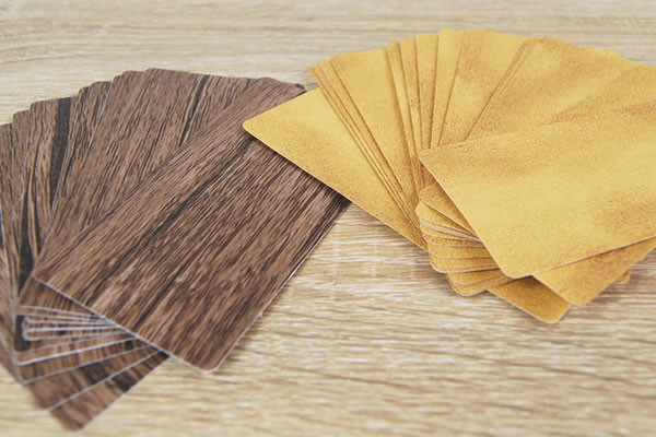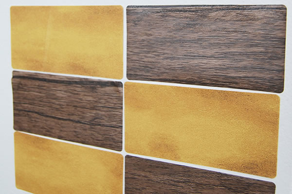 レンガと木目の模様が可愛らしい同商品。全長は約5(横)×10cm(縦)ほどの大きさで、1つのパッケージに20枚入っています。どちらのステッカーも“PVC”という素材で作られており、表面はサラサラとした手触り。水気の多い場所や特殊加工された壁には、使用できないので注意してください。