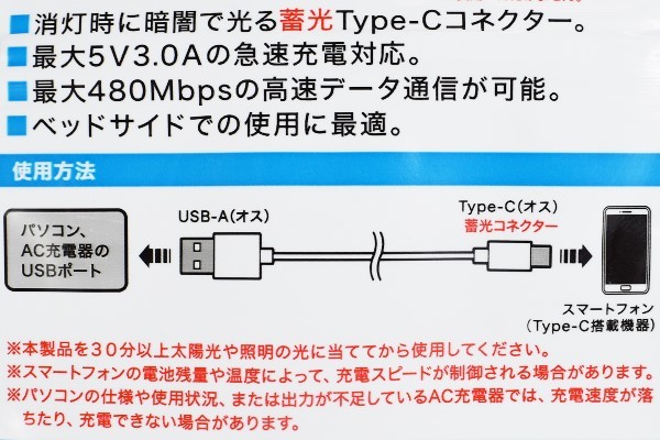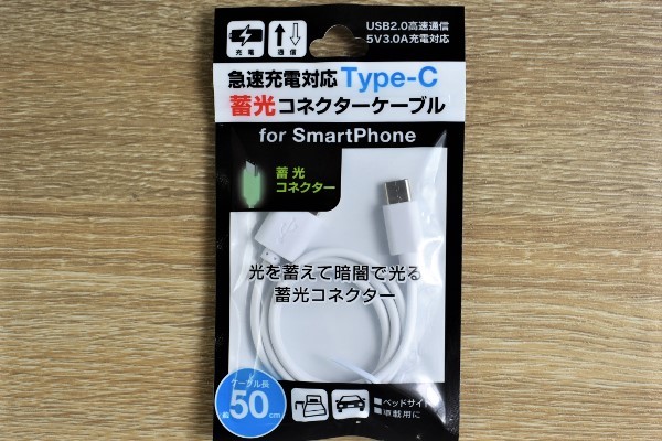 ●「急速充電対応Type-C蓄光コネクターケーブル」(セリア)