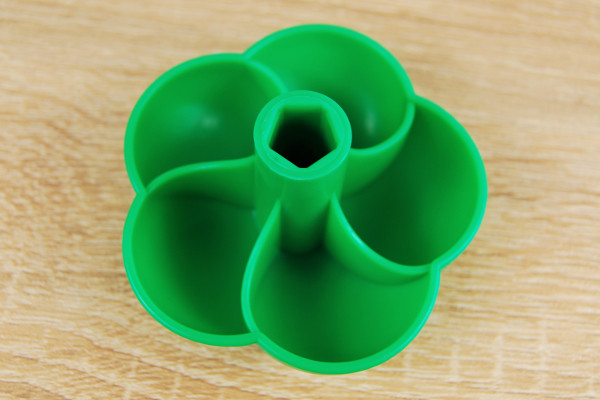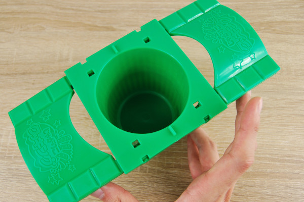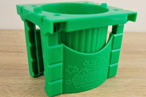 本体はじゃがりこのサラダ味を彷彿とさせるカラーリングです。緑と黄色を基調としたデザインが可愛らしく、パーツはハンドル、カップ、じゃがりこスポットで構成されています。