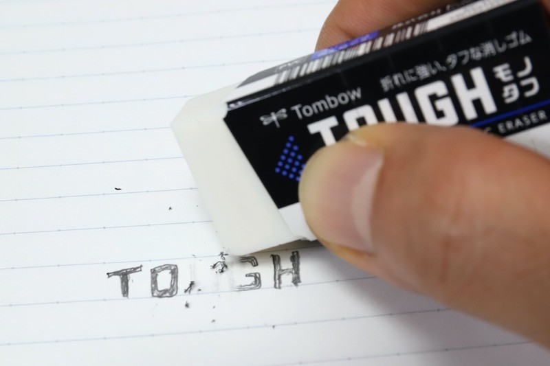 その名の通り、とにかくタフ。消しゴムをゴシゴシこすっていると発生しがちな折れ・割れ・カケに強い、というのが売りとなっている。