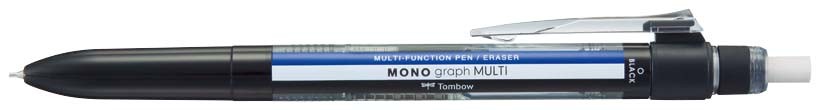 「モノグラフの最新モデルは、サラッとした低粘度油性ペンの黒赤2色・シャープペンシル・5.3mm径のモノ消しゴムの4つが細軸に入った、2+1+1の超多機能ペン。これ1本あればもはや筆箱要らずかも?」(きだてさん)
