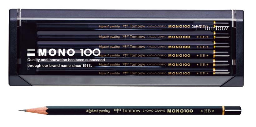 「黒鉛と粘土の微粒子が芯1ミリ立方あたりに100億個あるのが『100』の由来。微粒子の超高密度構造による芯の強さと滑らかな書き味、そして美しい軸のデザインは鉛筆の王者と呼ぶに相応しい」(きだてさん)