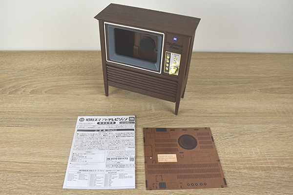 一般社団法人日本玩具協会が選定する、「日本おもちゃ大賞2019 ハイターゲット・トイ部門 大賞」を受賞した同商品。見た目はほぼ“昭和のテレビ”そっくりで、細部までしっかり再現されています。付属品の背面ボードをセットすれば、さらに本格的な姿へ。