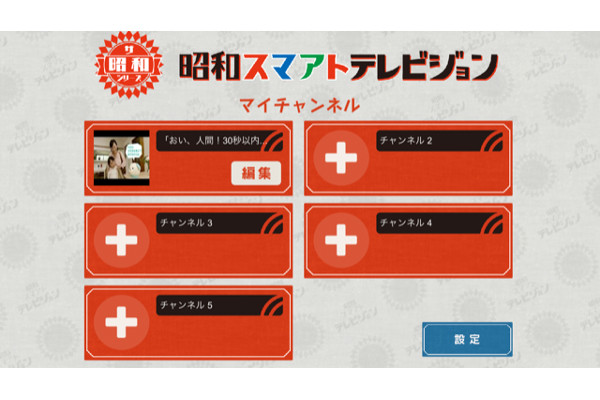 同商品を使う前に、スマートフォン専用アプリ「昭和スマアトテレビジョン」をダウンロードします。チュートリアル後に表れるメイン画面の「+」をタップしたら、YouTubeの動画ななどを合計5つ登録可能。また設定項目の“年代設定”で再生画質を選ぶことも。1950年代(モノクロ)から地上波デジタルまでの画質を自由に設定できます。