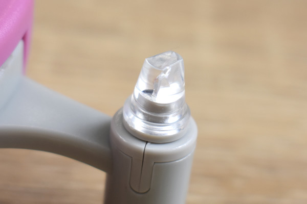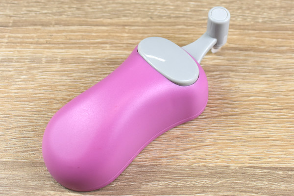 同商品は、マウスによく似た丸みを帯びたデザイン。サイズは約120(幅)×48(奥行)×35mm(高さ)、重さは38gほどです。本体はABS樹脂で作られており、刃の部分にはファインセラミックスが採用されていました。